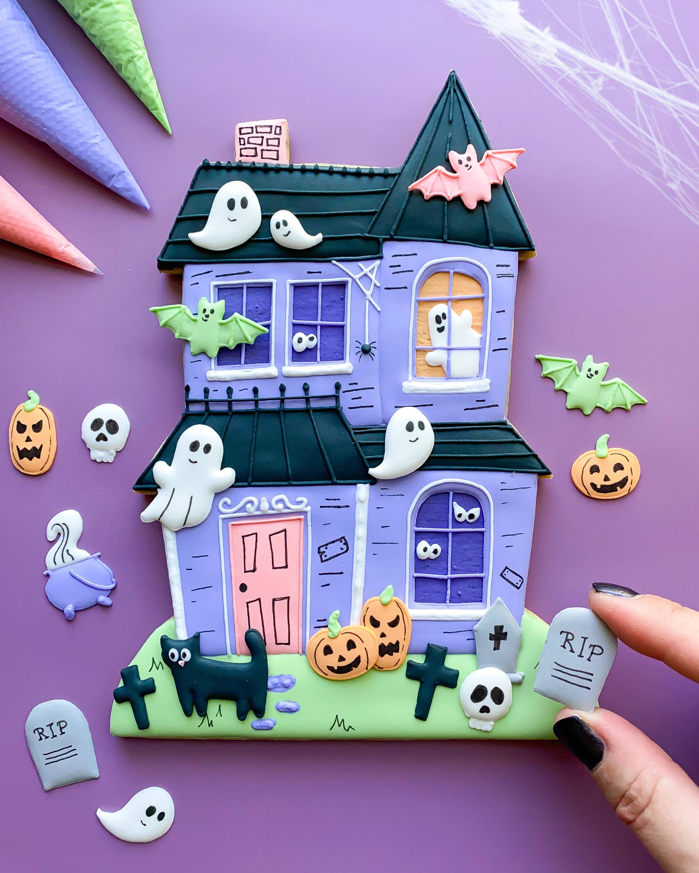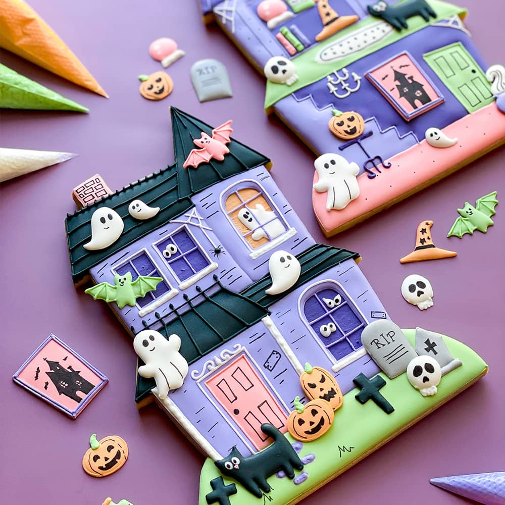 It's spooky season ๐ปCreate a cute haunted house cookie with me, then decorate it how you like with royal icing transfers in my new How To Cake It class! |